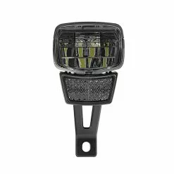 With clean lines and an angular design, the small NXT 60s Dynamo LED headlight from AXA is a welcome change from typically round lights. It looks good on modern city, trekking or fitness bikes. With the bracket, the bright e-bike front light can be screwed onto a rigid fork head or suspension fork bridge with a through hole. A front reflector is also integrated under the lamp housing to ensure complete road suitability.